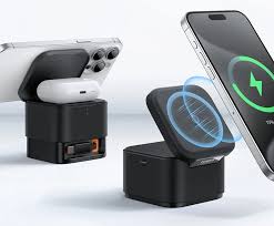 Com design moderno e suporte magnético, ele permite carregar até 3 dispositivos ao mesmo tempo com rapidez e segurança.